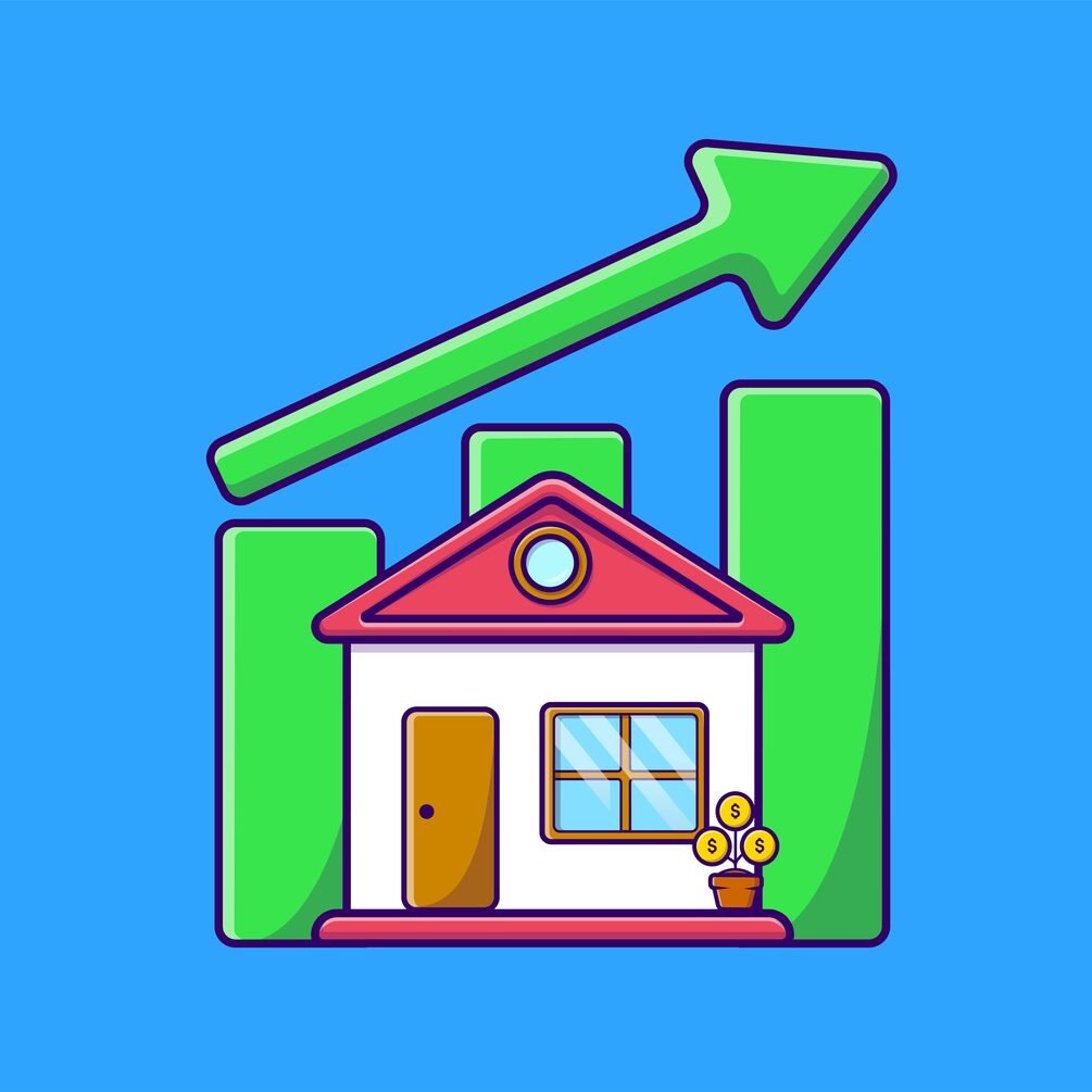 House With Gold Coin Plant And Statistic Cartoon Vector Icons Illustration. Flat Cartoon Concept. Suitable for any creative project.